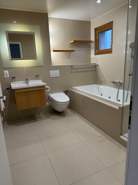 Pour un confort total, l'appartement dispose d'un chauffage au sol (gaz).de placards intégrés, de stores électriques et d'un système d'alarme.