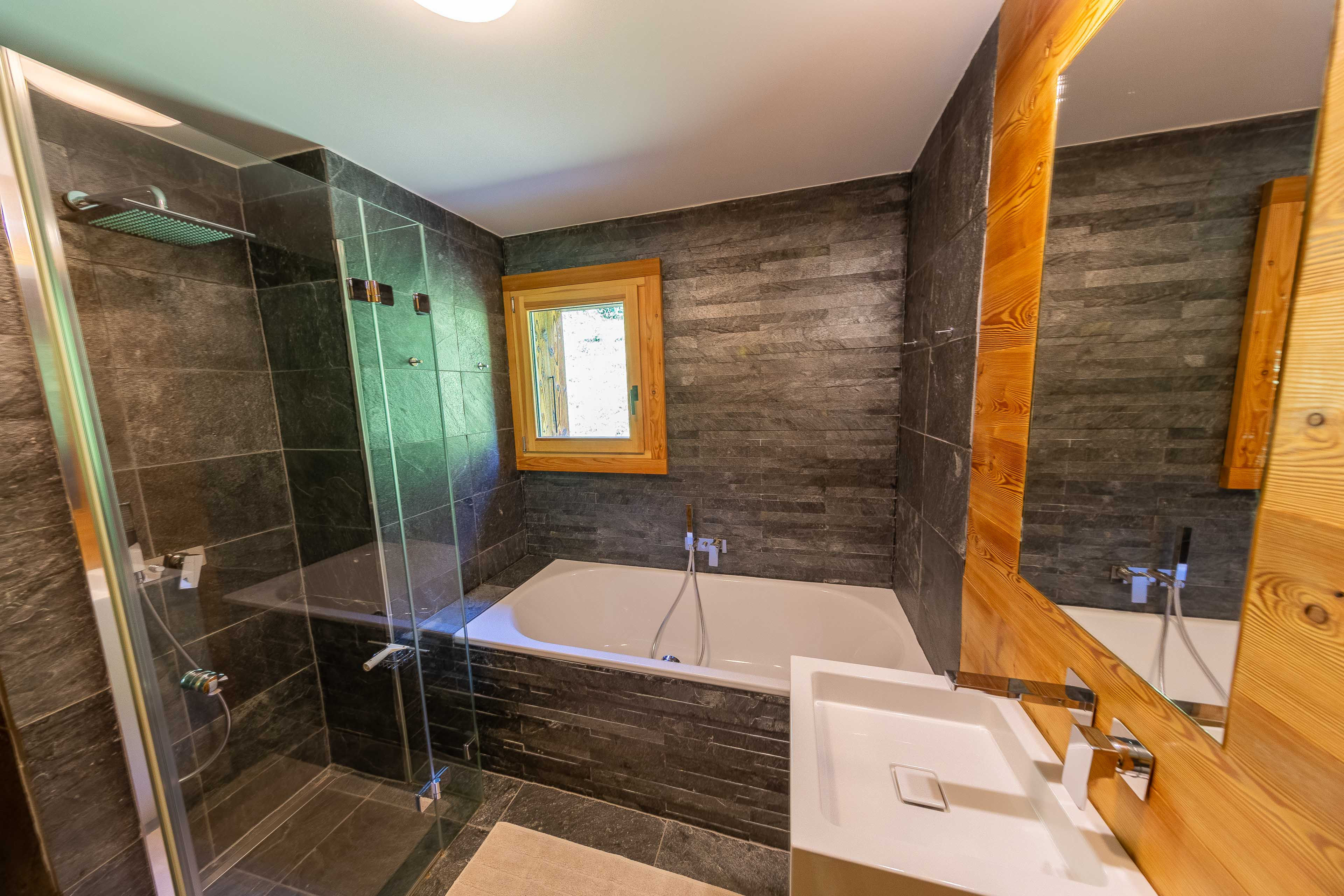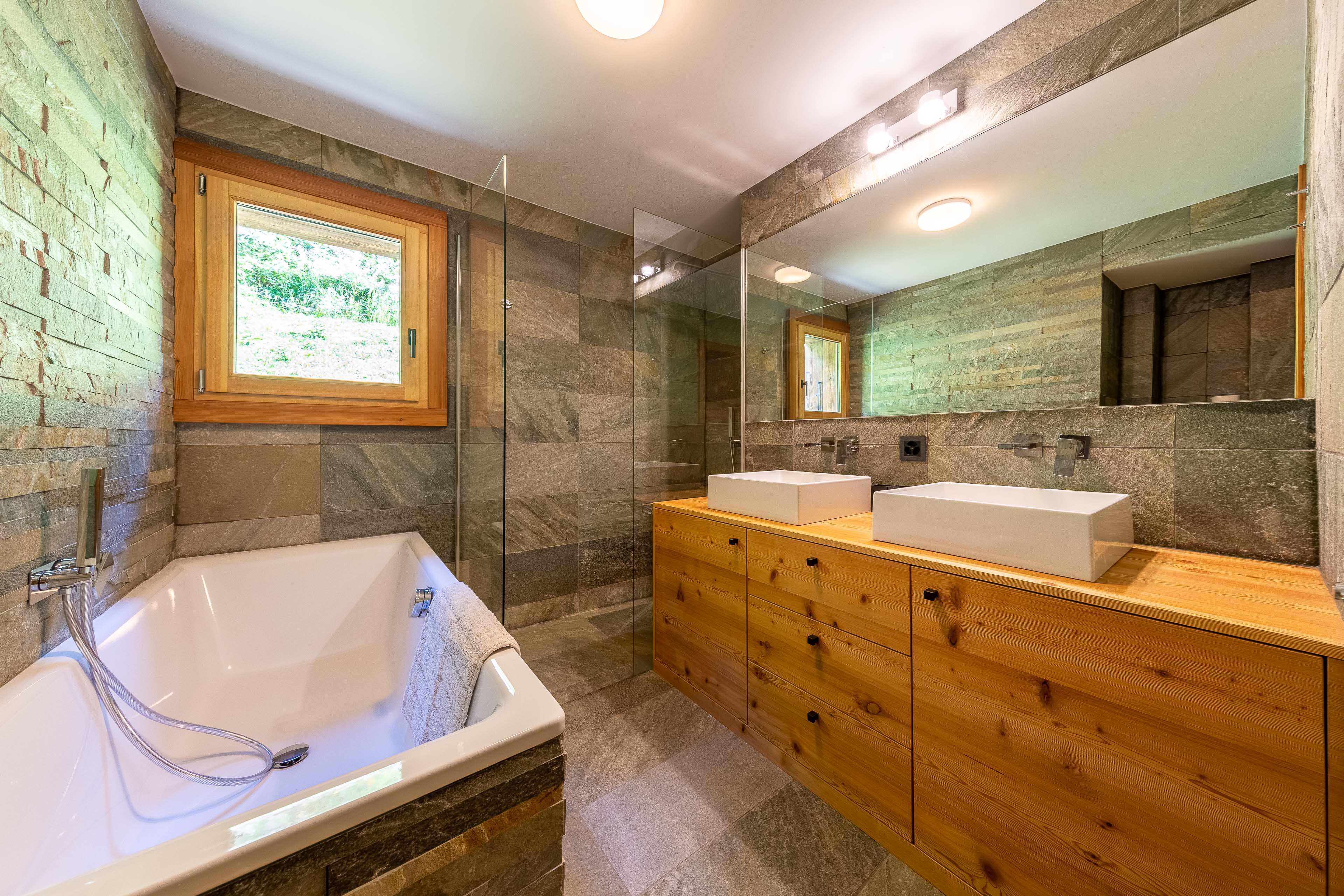 * SDB avec baignoire, douche et double lavabo