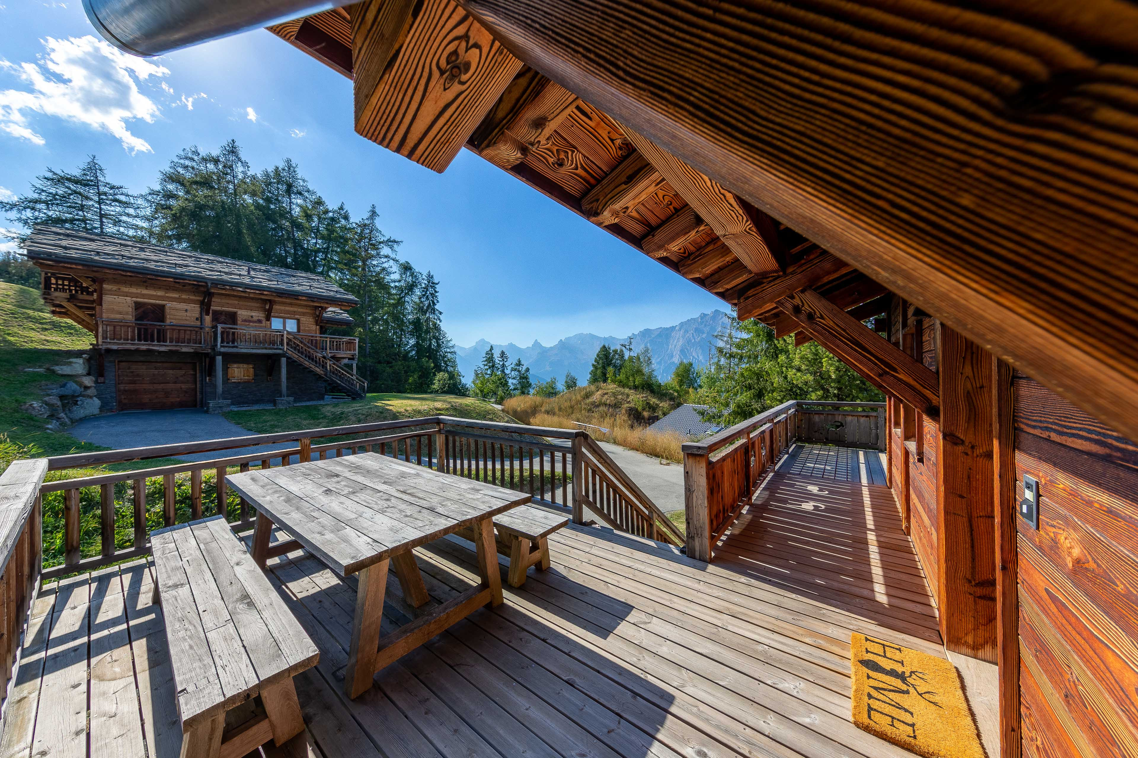 * Grand balcon avec vue sur les montagnes