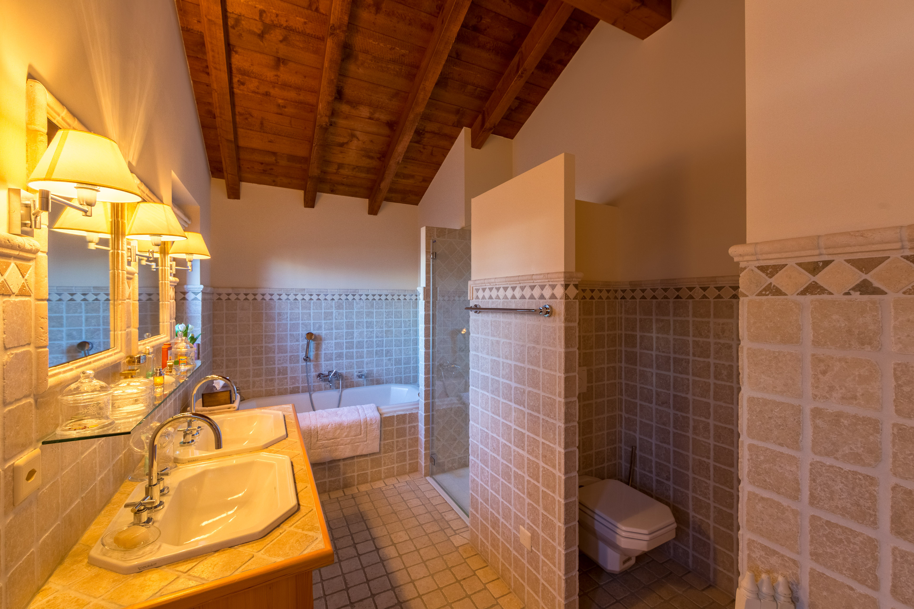 ° Chambre de maître avec salle de bains (lavabos, douche, bains et toilette séparée)