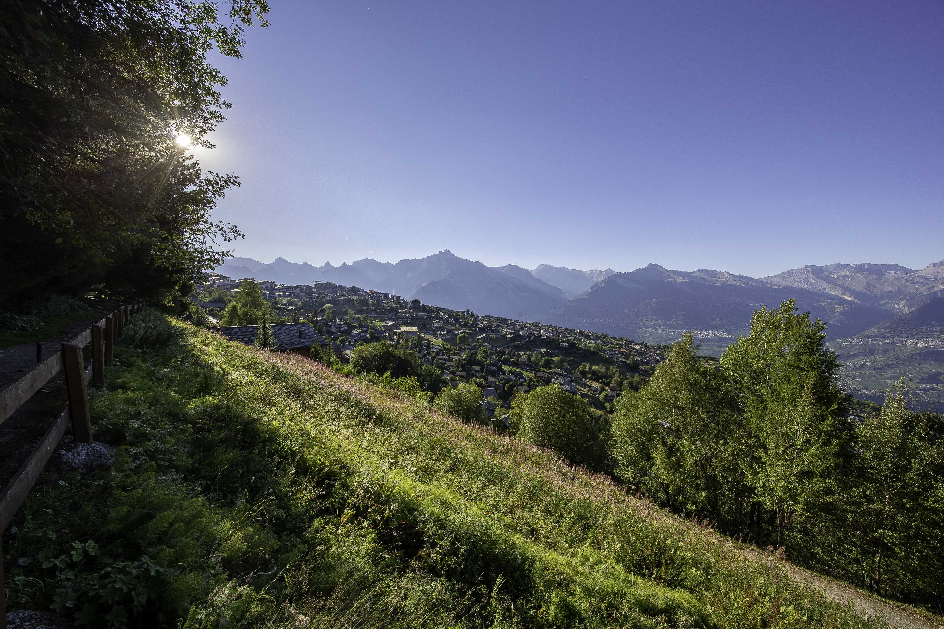 Le lieu dit Les Sérandes où se situent les terrains offre une très belle vue sur la vallée du Rhône et les Alpes Bernoises. Il est longé par le Bisse du Milieu, point de départ d'agréables promenades familiales.